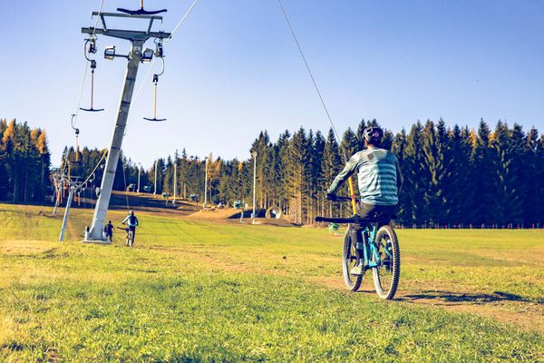 Bei einer Mountainbike-Ausfahrt mit dem Traildesigner der Wexl Trails, Philipp Wiedhofer, kamen die beiden über den im Sommer 2021 geplanten Schleppliftstart ins Gespräch.