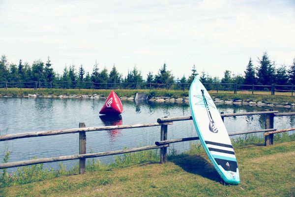 Dort stehen Stand-up Paddle Boards zum Verleih für euch bereit.