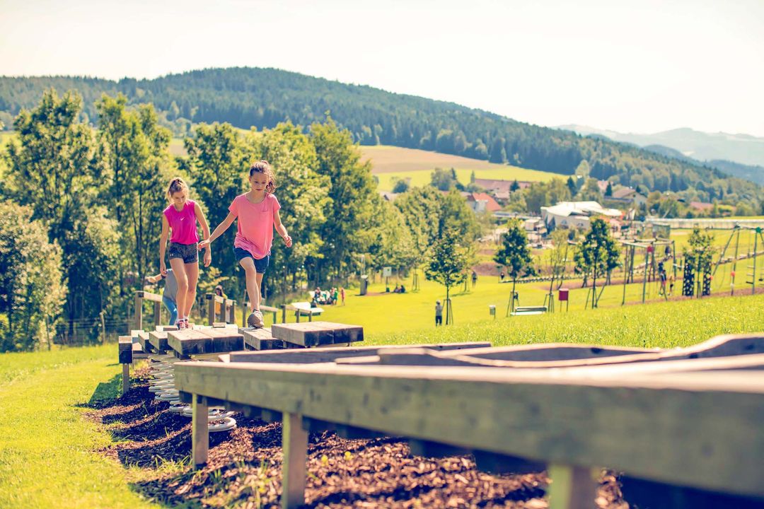 The mini bike park and pump track in St. Corona am Wechsel offer an ideal setting to get closer to the topic of mountain biking.